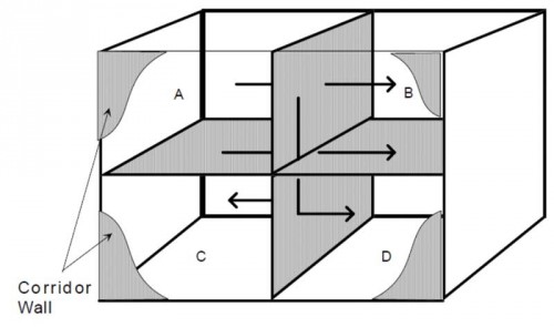 The remaining three thrusts are each a measurement series in the flanking sound transmission facility on building systems consisting of concrete block masonry walls with wood flooring (Thrust 3), masonry with hollow precast concrete floors (Thrust 4), and masonry with steel joist flooring systems (Thrust 5) to generate input data for junction coupling needed for ASTC prediction using the calculation method. These latter thrusts consist of full-scale mockups (11 m long x 7 m high x 5 m wide [36 x 23 x 16 ½ ft]) of the loadbearing masonry wall, floor system, and junction (with separately constructing and measuring performance for each of X- and T-junctions). Full-scale test mockups are required with the steel or wood joists or hollow core slab running both parallel and perpendicular to the masonry wall because these flooring systems are anisotropic.