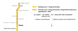 The Yonge North subway extension will extend the Toronto Transit Commission’s (TTC’s) Line 1 service, north from Finch Station to Vaughan, Markham, and Richmond Hill; and will include five new stations along the approximately 8-km (4.97-mi) extension.