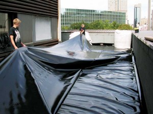 A green roof often means more foot traffic to the rooftop during installation, normal use, and regular maintenance—this increases the probability of mechanical damages of the roof membrane. The membrane is also constantly exposed to moisture, chemicals, and roots. Additionally, it is difficult to locate leaks and it is labour-intensive to repair them. Therefore, it is important to install the most robust and durable roof membrane with good workmanship on green roofs for long-term performance.