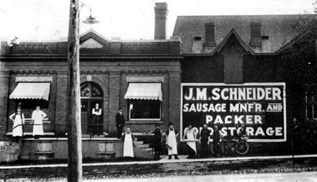 The subject of this year’s competition is an 1858-m2 (20,000-sf) rectangular red brick building built in 1948, which was once part of the John Metz Schneider Meat Processing Compound in Kitchener, Ont. The building originally served as an office but over the years morphed into the garage where the Schneider’s fleet of cars and trucks were maintained. The story really begins in 1890 when Schneider, an immigrant from Germany, founded the meat packing company. For over 125 years, JM Schneider’s has employed thousands of people from the community who worked at the company their entire lives—they met, married, and had children who followed in their footsteps. Schneider contributed to the fabric of the community. There is much more to the history than just the building.