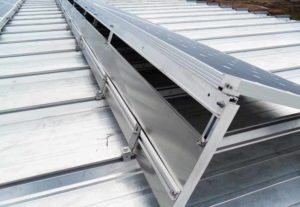 The easiest systems to install are those on standing-seam metal roofs. By clamping the panels to the seam, one can avoid penetrations. Solar arrays can also be installed on corrugated metal or asphalt shingles. In these cases, the fasteners penetrate the roof material and a flashing is used to prevent any water from entering the building.