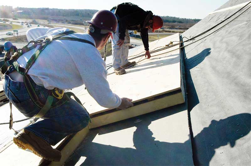 Efficient drainage is the most important element in the maintenance of a low-slope roof. This reduces loads and stresses on the membrane and the supporting roof structure. Often what determines a roof’s ability to drain effectively has less to do with the roof membrane itself and more to do with what lies beneath the visible roof surface. Designing the foundation for a roof membrane with a slope provided either through structural elements or a tapered insulation system ensures the roofing system drains well and is easier to maintain.