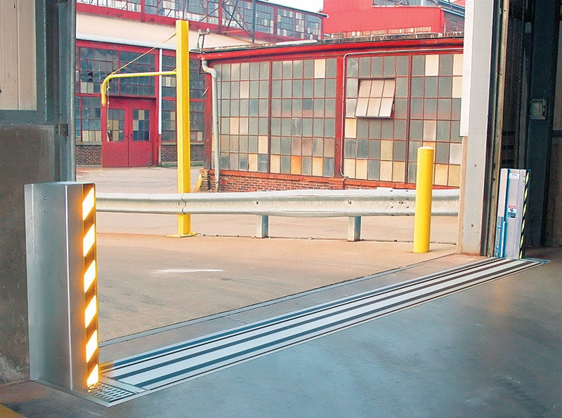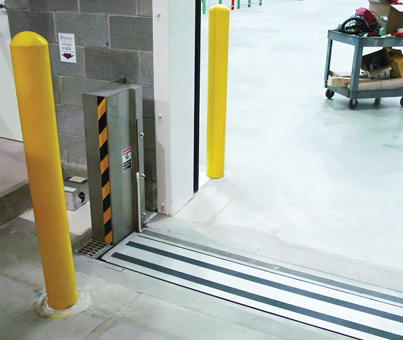 Constructed from solid, welded Type 304 stainless steel with a Teflon gasket and built to withstand harsh conditions, pop-up barriers are suitable for many settings. Offering chemical resistance and long service life, they are made in a one-piece factory-adjusted design, lubricated, and easily installed in existing doorways. Designed to lie flat on the floor when not in use, there is no need for berms or ramps, and retention heights of 305 mm (12 in.), 457 mm (18 in.), and 610 mm (24 in.), respectively, are available. Available sealed widths range from 1,016 to 4,978 mm (40 to 196 in.). Their robust construction supports vehicular traffic up to 5,897 kg (13,000 lb) of axle weight when flat and not in use, making them no problem for busy facilities. Owners should follow manufacturer guidelines for periodic maintenance for peak performance.