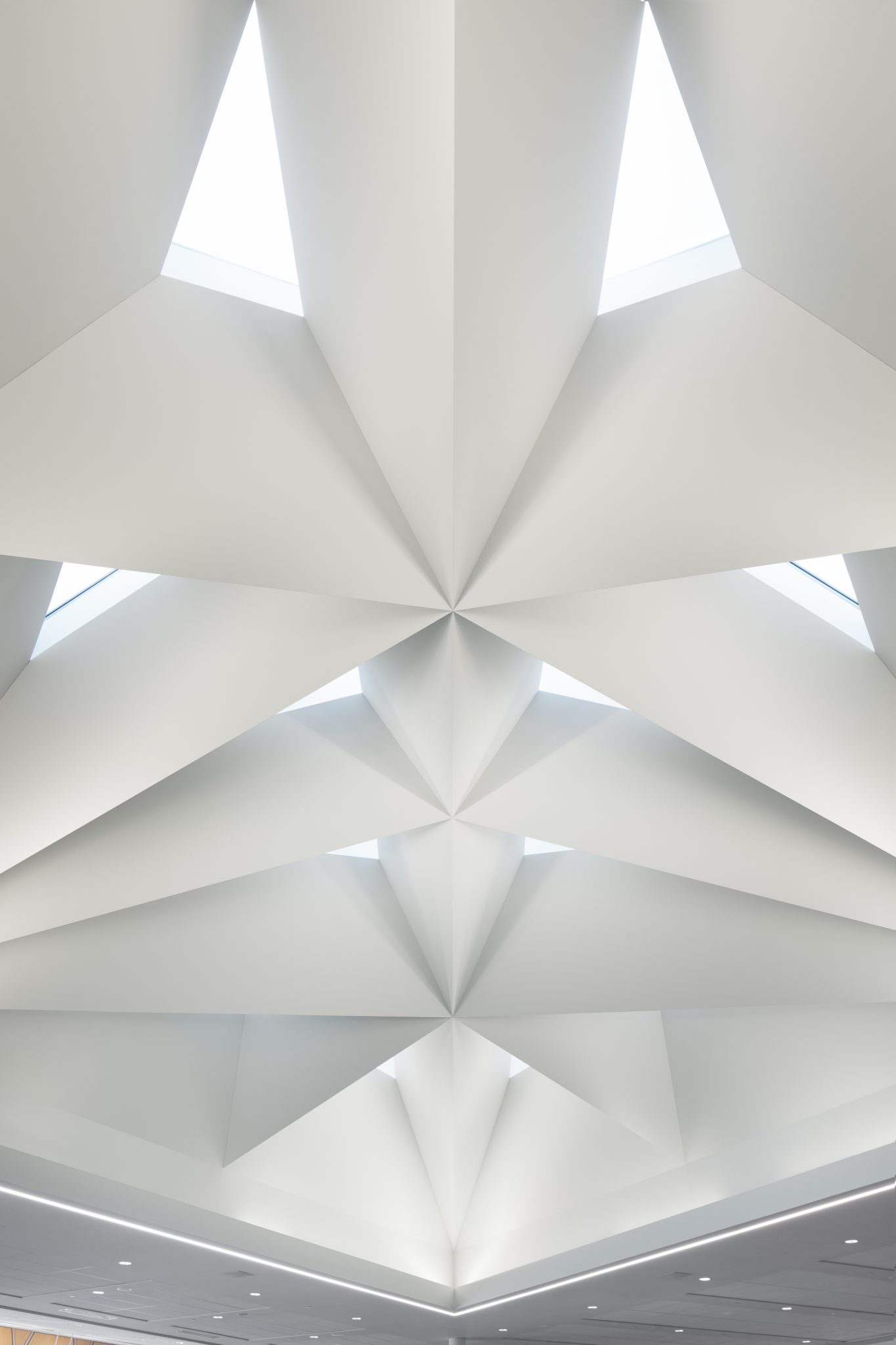 The centre integrates with the existing airport, while distinguishing itself by the special treatment of its facades. Inspired by the convergence of global travellers, the design features a dynamic triangular grid across the facade, columns, and skylight geometry. The facade is representative of the Canadian Shield’s landscape, characterized by dense forests, rocky outcrops, and vast expanses of water, which is echoed in material choices such as Atlantic Black granite flooring and birch wood wall cladding.