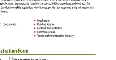 | The course is designed for those individuals involved in construction administration, including Contract Administrators, Property Managers, Architects, Engineers, Interior Designers, Specification Consultants, Building Authorities, and Bonding and Insurance Agencies. |