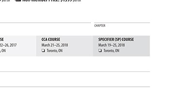 | Completion of this course is mandatory in the process of becoming a Certified Specification Practitioner (CSP). It also reduces the number of hours required to become a Registered Specification Writer (RSW). |
