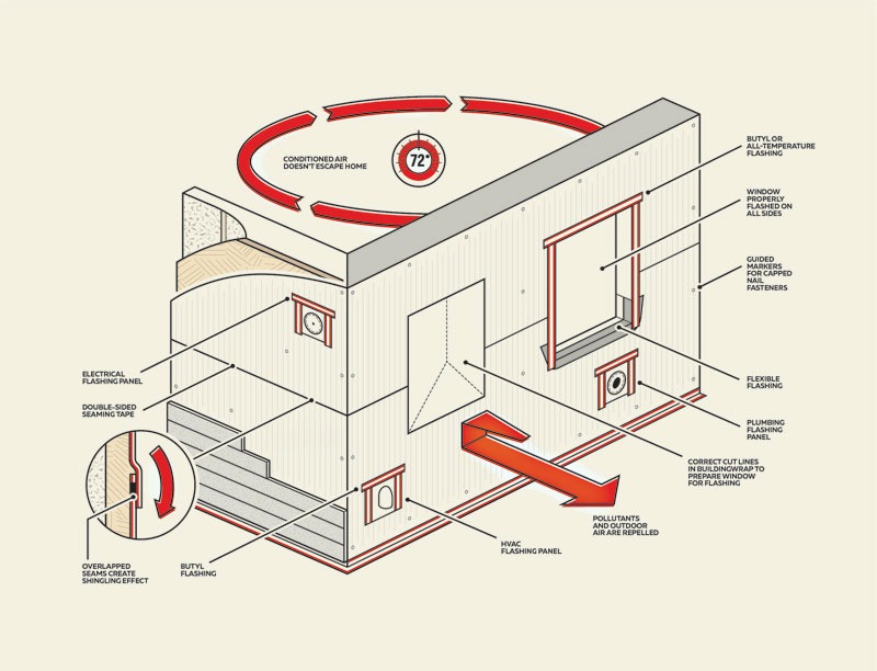 To counter this problem, some manufacturers have developed a system approach that includes compatible tapes for seaming and adhesive flashings for openings. When installed together, these systems are often assured through extended warranties from the manufacturer. When in doubt, always check the manufacturer’s website for additional guidance.