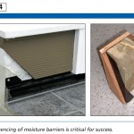 Drainage refers to the building assembly’s ability to redirect any water that enters the building envelope and allows it to drain to the outside. Drainage depends on the proper sequencing of moisture barriers and detailing of wall openings and posts. Proper wrapping of rough door opening jambs and sloping of door sill framing members will help deflect any trapped moisture to the outside.