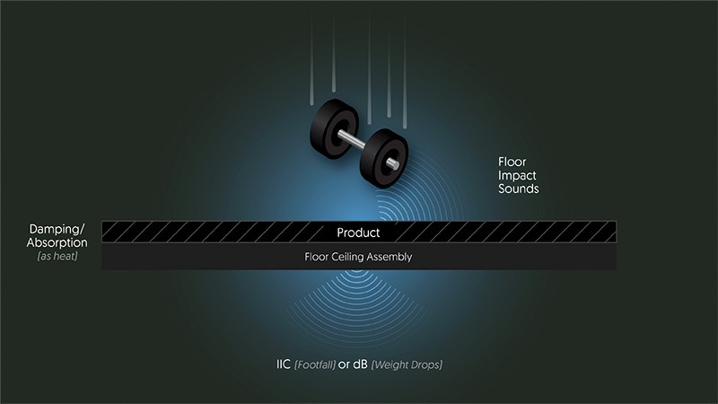 Building codes in multi-family housing require a minimum Impact Insulation Class (IIC) rating of 50 to reduce impact sound transmission between residential units. This minimum contributes to a baseline of acoustic comfort and privacy. Similar guidelines exist across other sectors, including hospitality, education, and health-care.